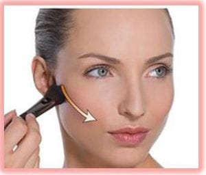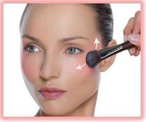 c) Technique for Highlighting: Sway the blush brushing back and forth in the upper areas of the cheekbones. Carefully blend the blush along the lines of temple without dabbing it near the eye areas See the image