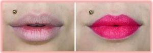 b) Then line up your lips with a white or lighter lip-liner. Also, take care of the corner folds of the lips when you apply the lip-liner. Blend the lip-liner with the lipstick and even it out;